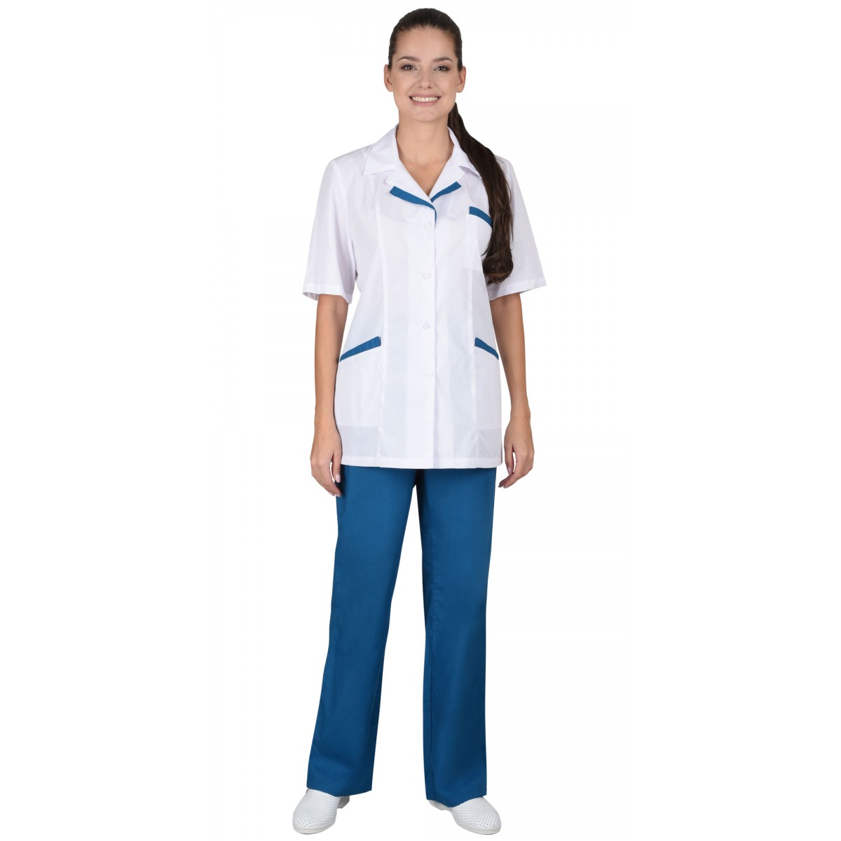 Костюм СИРИУС-ЛИЗА женский белый с тёмно-бирюзовым