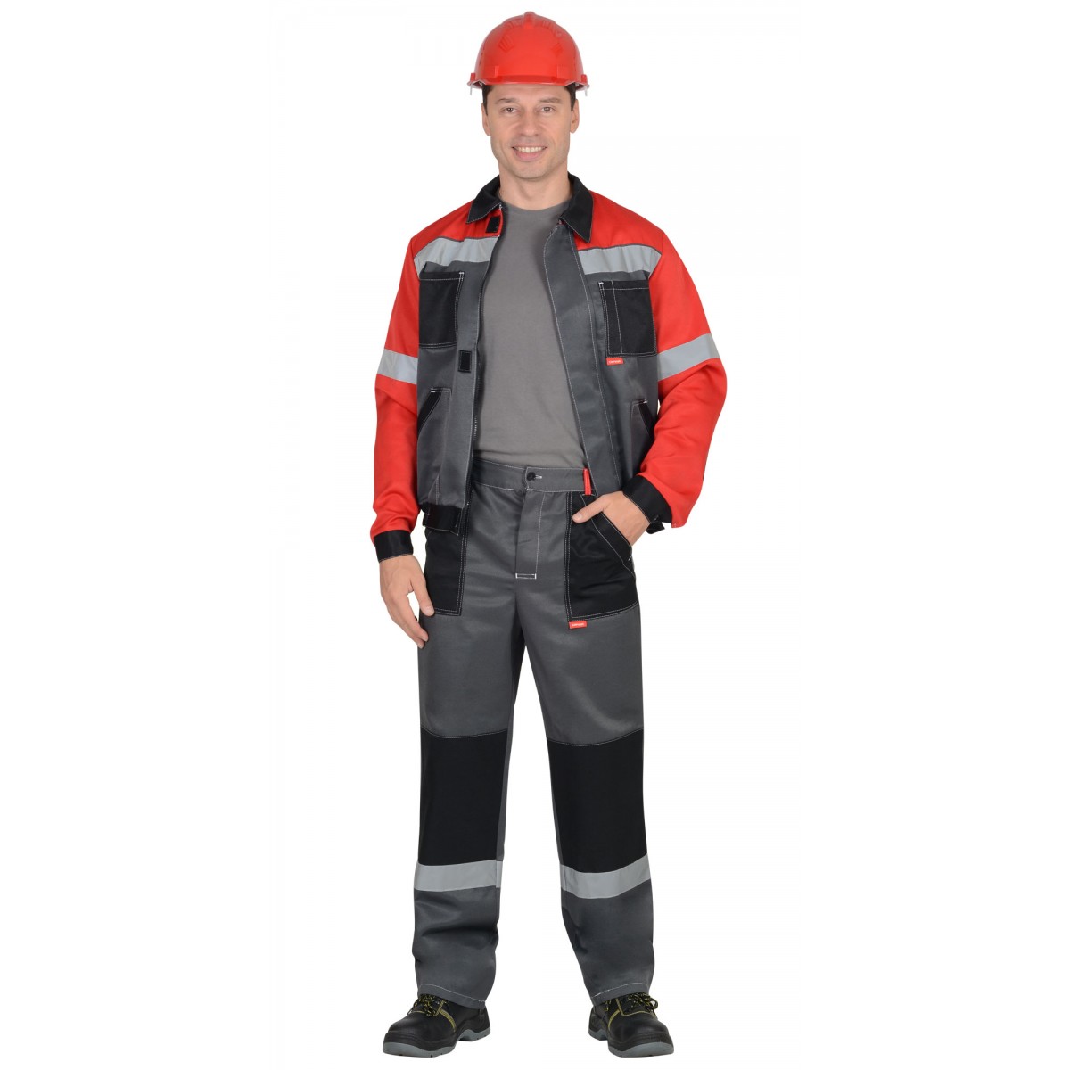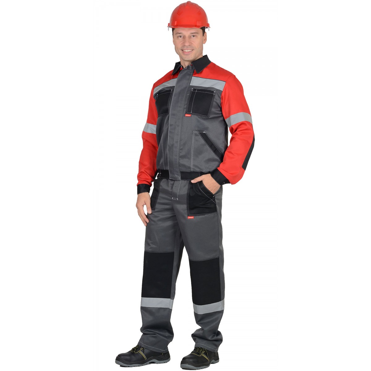Мужской летний костюм "СИРИУС-ЛЕГИОНЕР" с красной и черной отделкой состоит из куртки и брюк.