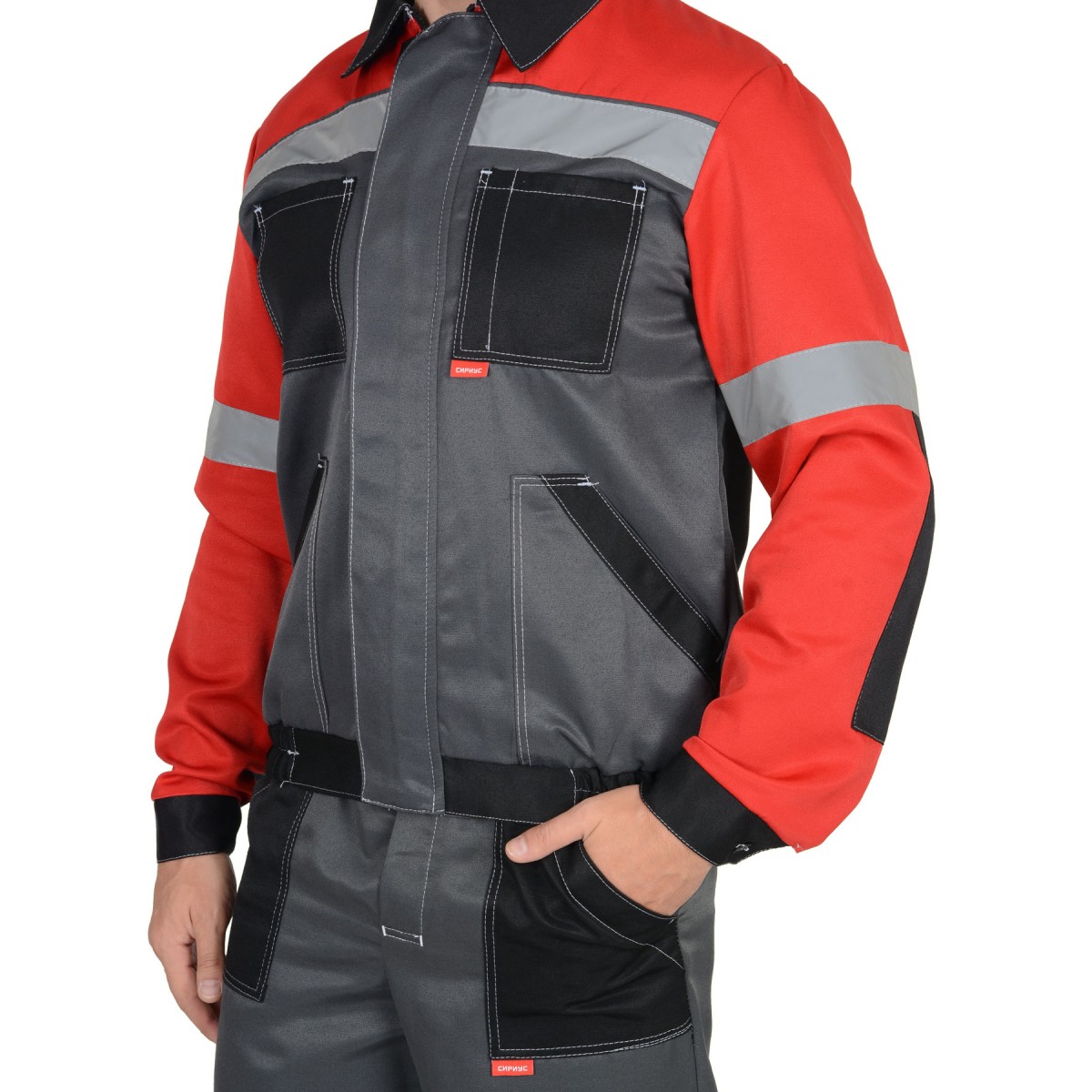 Куртка короткая с центральной застежкой на молнию; с ветрозащитной планкой, с отложным воротником, с верхними и нижними накладными карманами. Рукава с притачными манжетами.Светоотражающие полосы шириной 50мм по спинке полочкам и рукавам, обеспечивают безопасность работы в условиях пониженной видимости.