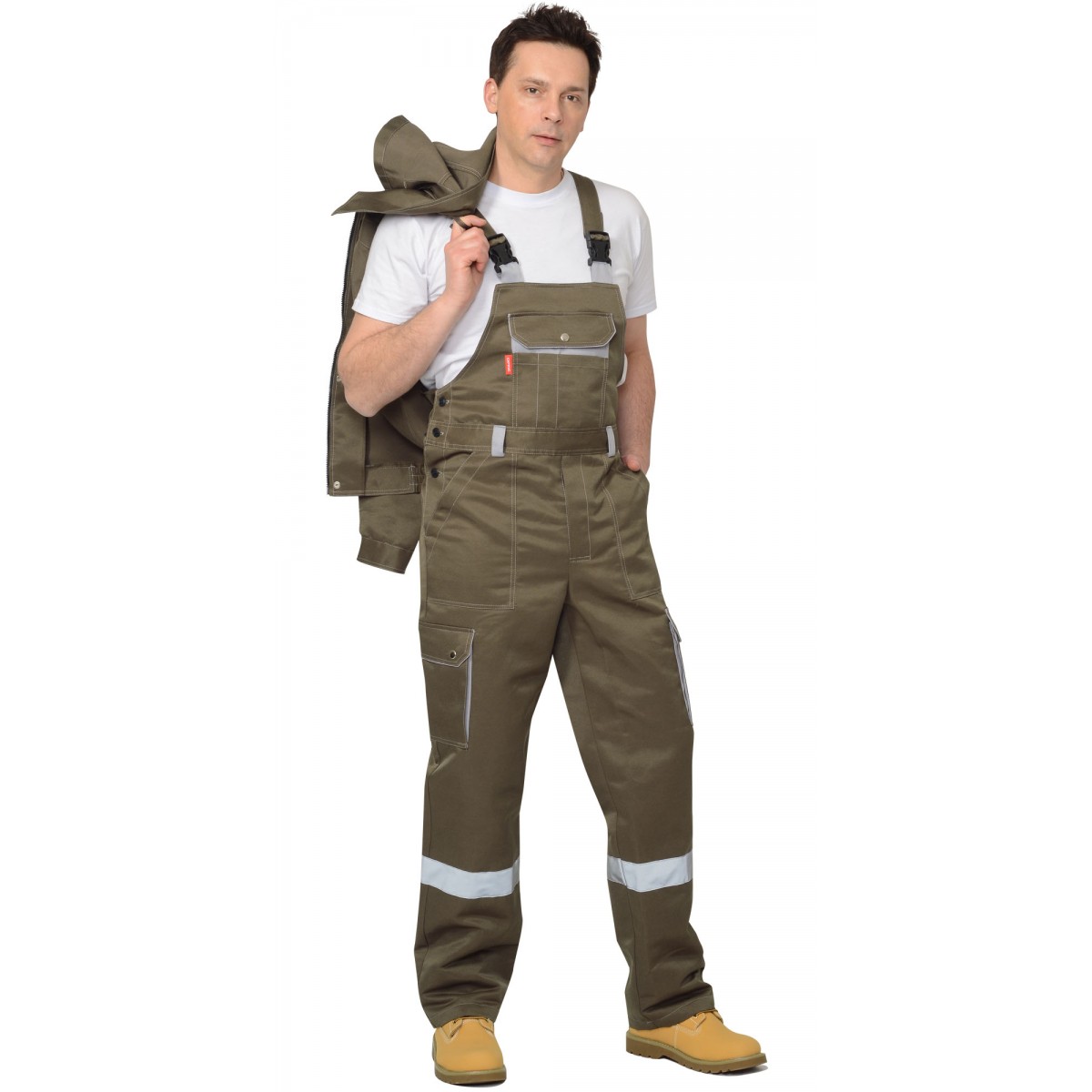 В костюме предусмотрена Светоотражающая полоса 50мм (СОП), для обеспечения безопасности работы в условиях пониженной видимости.