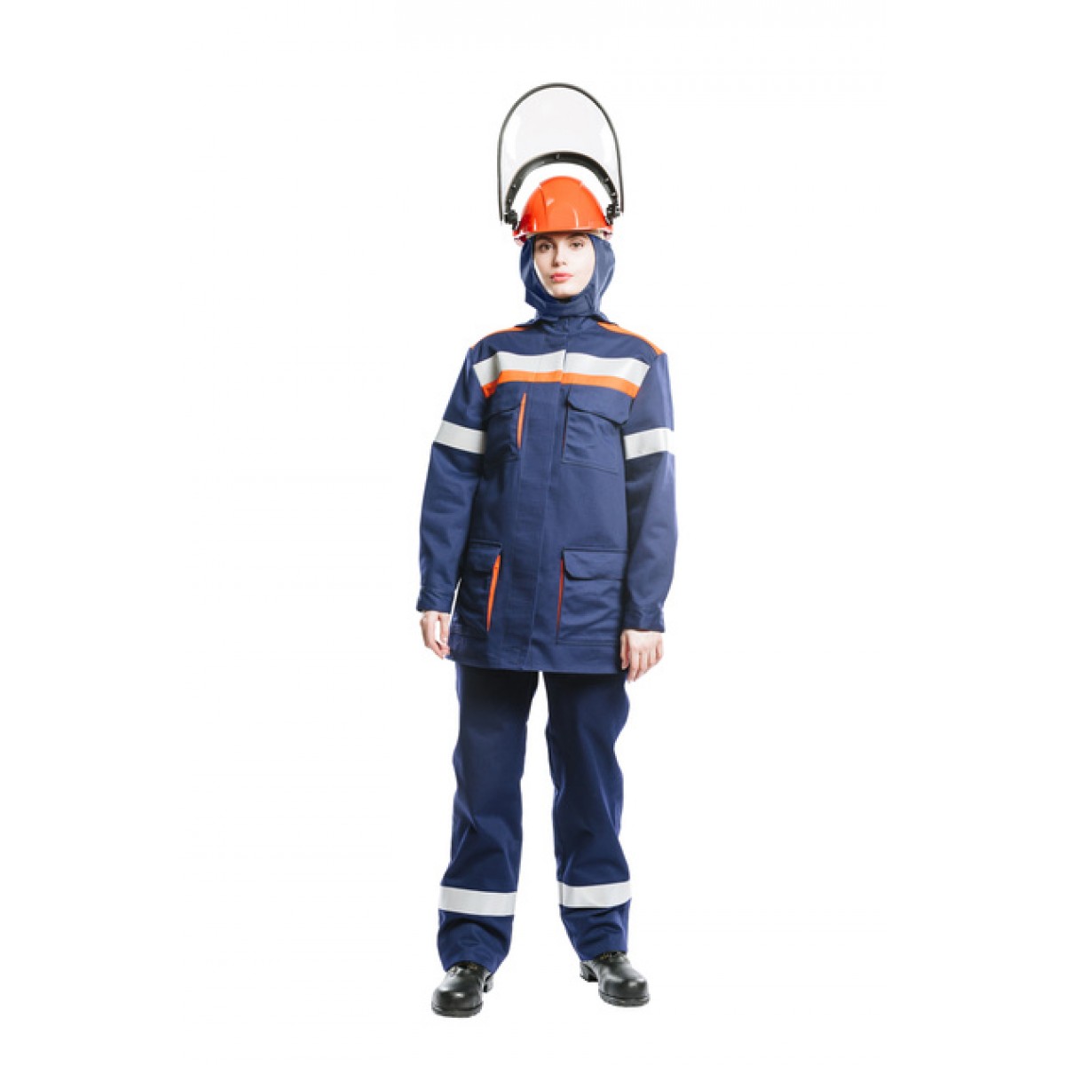 Костюм специальный летний мужской или женский из огнезащитной ткани WORKER 265E ( Основная ткань WORKER 265E (87% хлопок, 12% нейлон, 1% антистатическая нить). Ткань накладок WORKER 320Е (87% хлопок, 12% нейлон, 1% антистатическая нить) для защиты от термических рисков электрической дуги. Уровень защиты до 31 кал/см.кв.