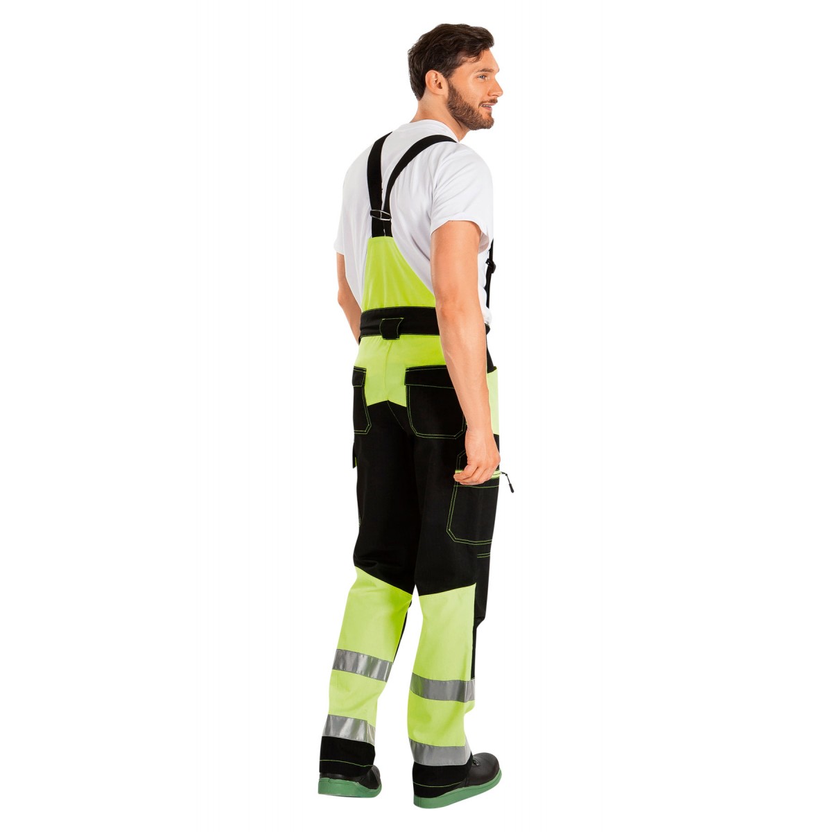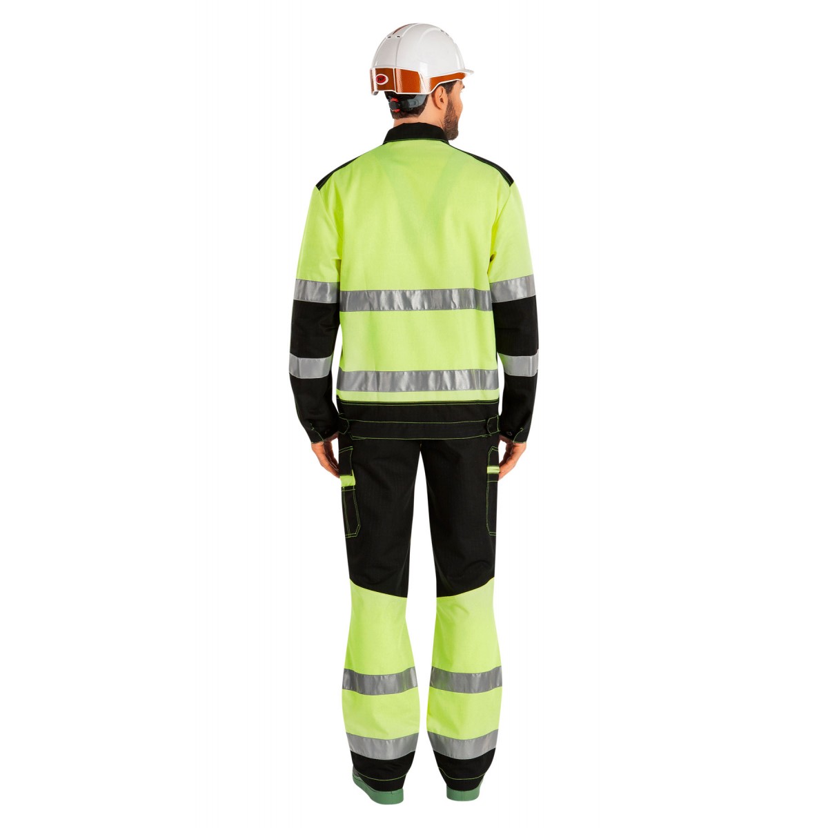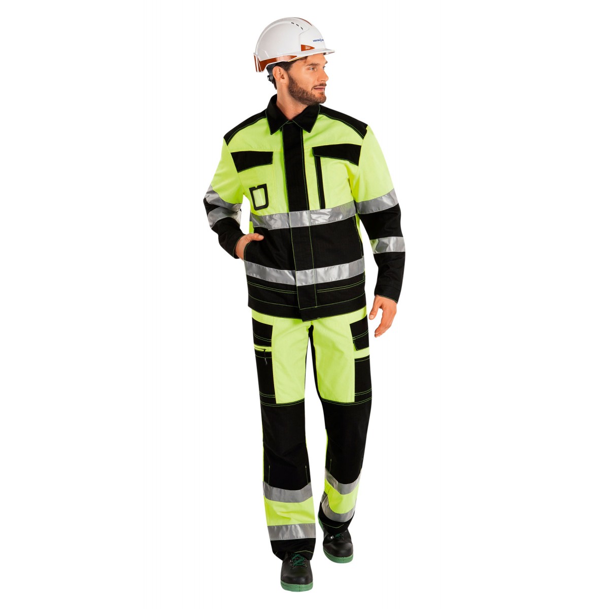 Светоотражающие элементы: полосы на спинке, полочках, рукавах, низу брюк.