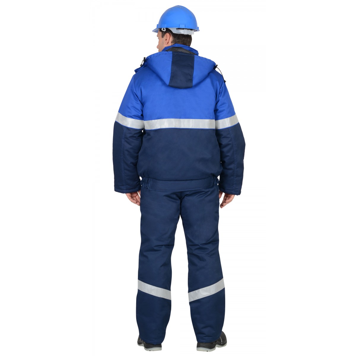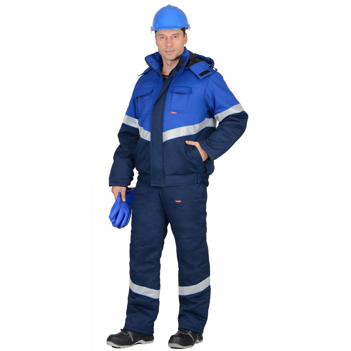 Костюм "Навигатор" состоит из куртки и полукомбинезона.Куртка прямого силуэта, укороченная, с притачной утеплённой подкладкой, с центральной застёжкой на молнию, с ветрозащитным клапаном, застегивающимся при помощи ленты «контакт», с воротником - «стойка», с верхними накладными карманами с клапанами и нижними карманами с боковым входом, с притачным поясом с эластичной лентой в боковых частях, с СОП на полочках, спинке и рукавах.Полукомбинезон прямой, с притачной утеплённой подкладкой, с регулируемыми за счёт эластичной тесьмы и фастексов бретелями, притачным нагрудником, центральной застёжкой на молнию, с двумя нагрудными накладными карманами с клапанами с патой и с липучкой, боковыми накладными карманами