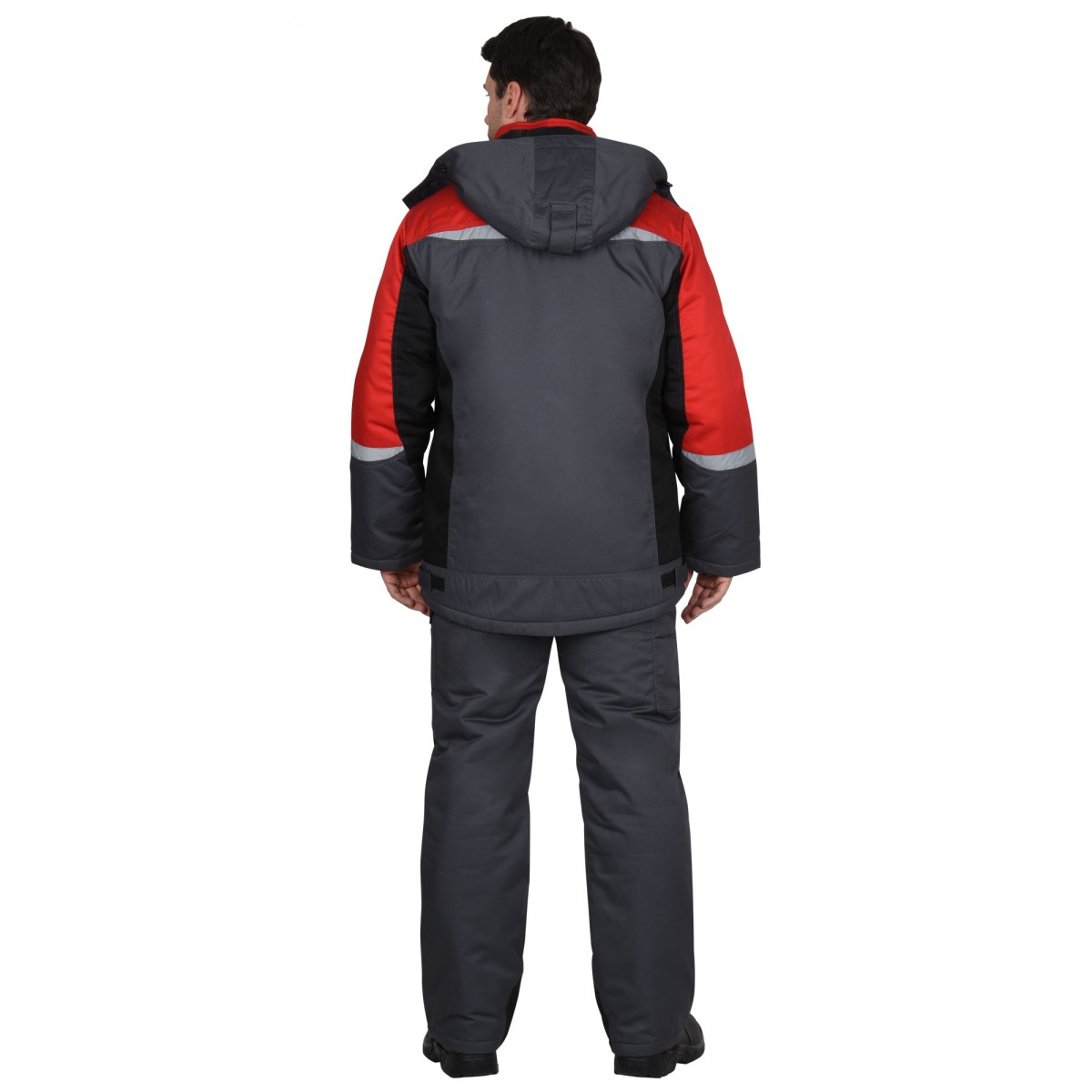 Куртка прямого силуэта, длинная, с притачной утеплённой подкладкой, с прокладкой из ткани "Лаке", с пристёгивающимся утеплённым капюшоном, с воротником стойка, с центральной застёжкой на 2-х замковую тесьму-"молнию", с ветрозащитной планкой на липучке, с подрезными бочками, с верхними фигурными карманами, с нижними прорезными карманами на "молнии". Низ регулируется при помощи хлястиков и липучки. Рукава резные, ширина внизу регулируется при помощи хлястиков и липучки.