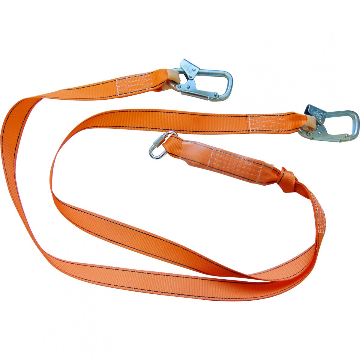 Строп из полиэфирной ленты с двумя монтажными и одним соединительным карабинами, с амортизатором, двойной. Строп упакован в водонепроницаемый пакет и содержит паспорт и инструкцию по применению.
