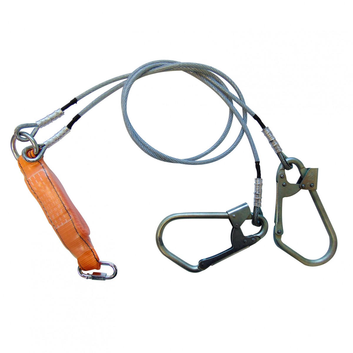 Строп из металлического троса в ПВХ оболочке с двумя монтажными и одним соединительным карабинами, с амортизатором, двойной. Строп упакован в водонепроницаемый пакет и содержит паспорт и инструкцию по применению.