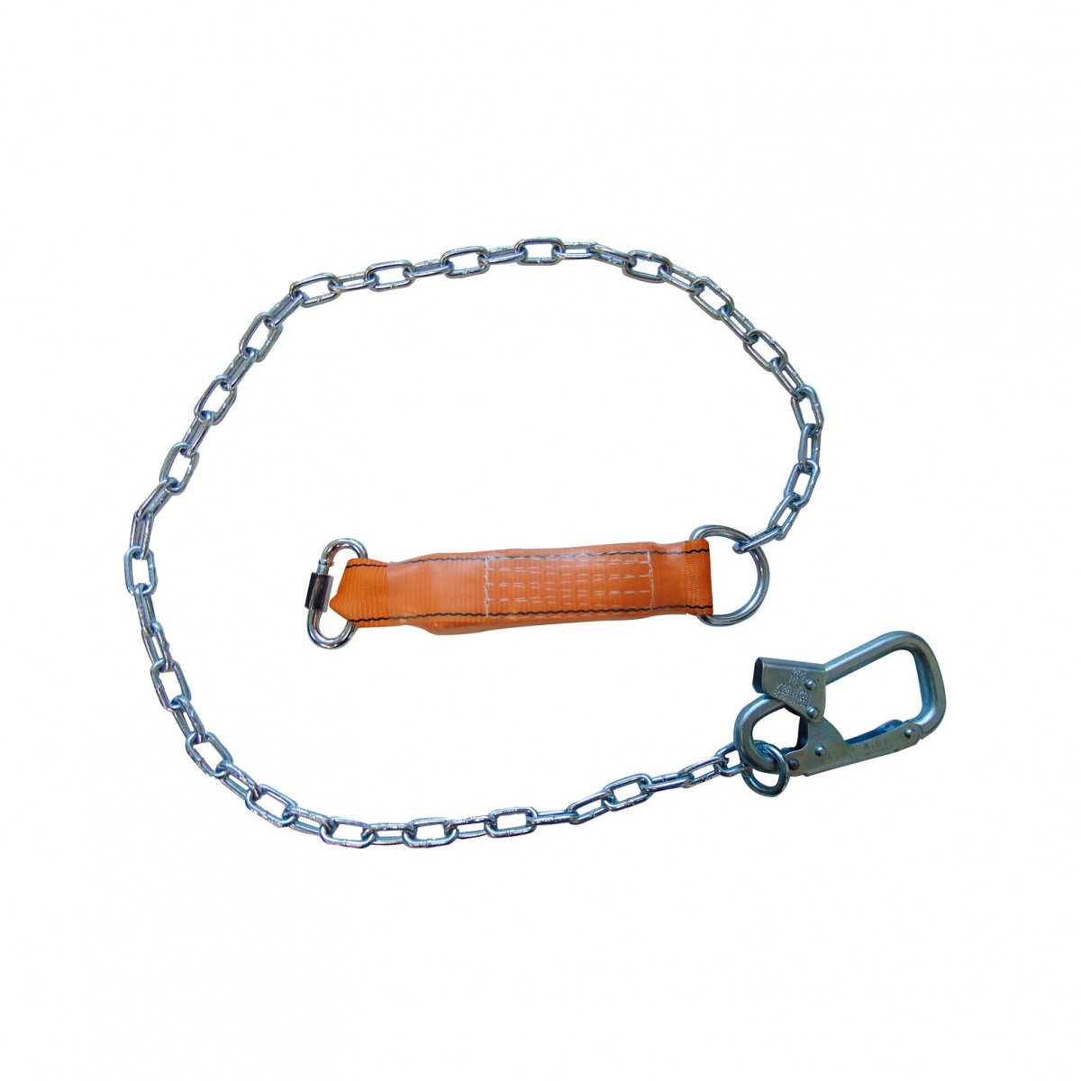 Строп из металлической цепи с амортизатором,с одним монтажным и одним соединительным карабиноми. Строп упакован в водонепроницаемый пакет и содержит паспорт и инструкцию по применению.