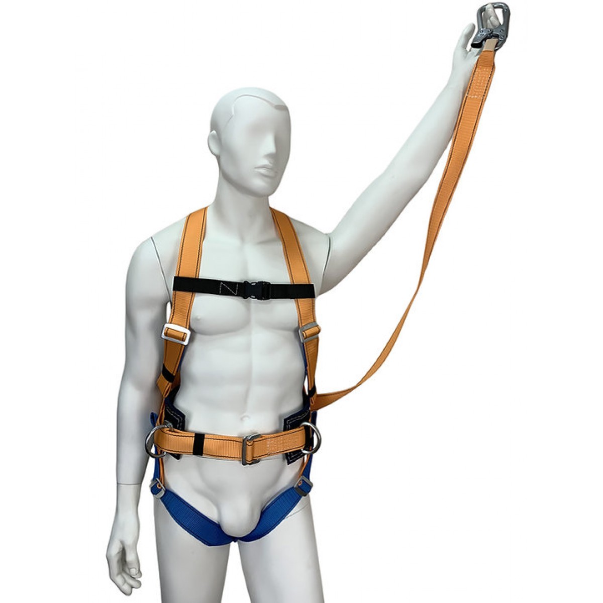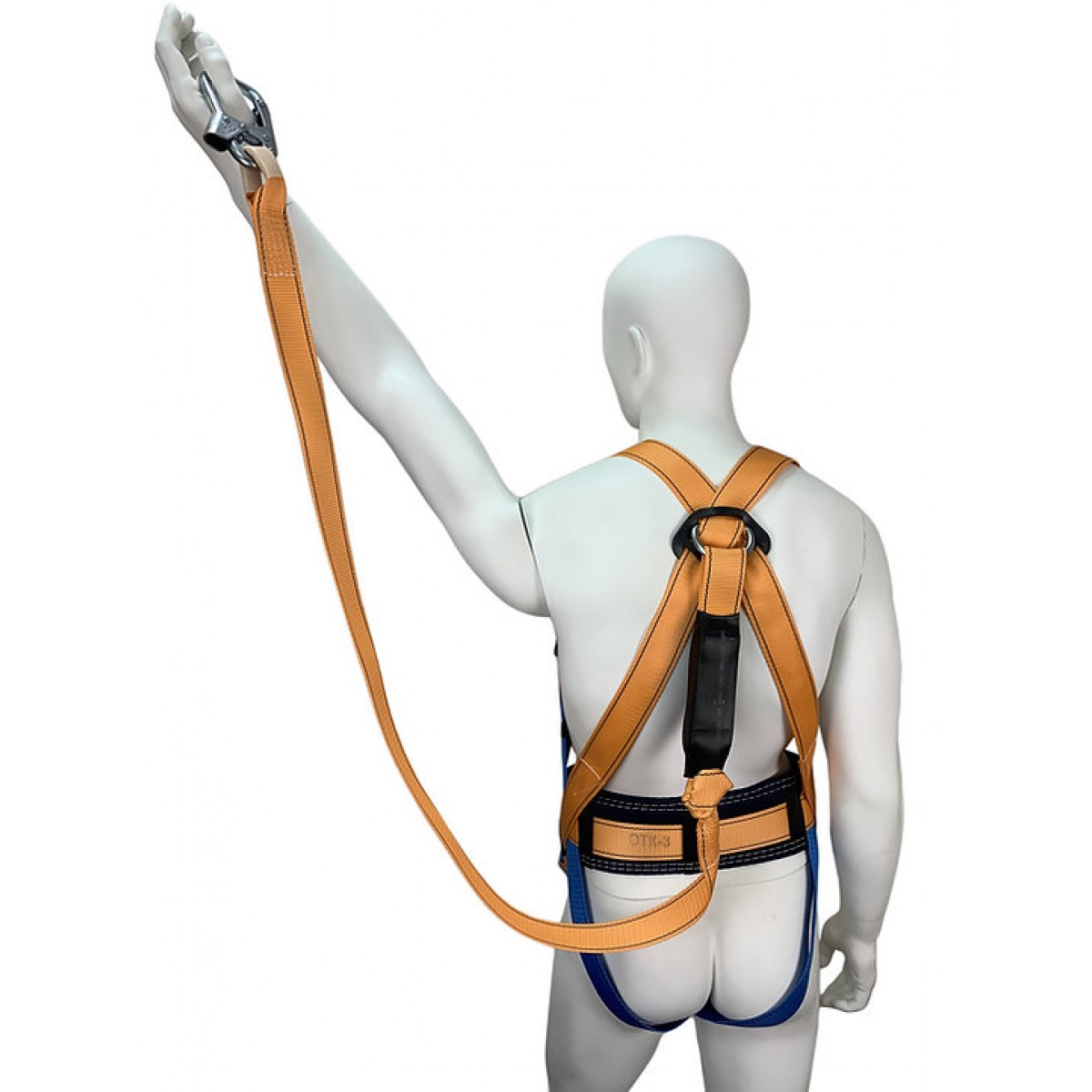 Состоит из привязи ремня с пряжкой, наплечных и набедренных лямок, кушака, двух D-колец на поясе (для удержания и позиционирования) и одного на спине и страховочного стропа из полиэфирной ленты с амортизатором. Привязь упакована в водонепроницаемый пакет и содержит паспорт и инструкцию по применению.